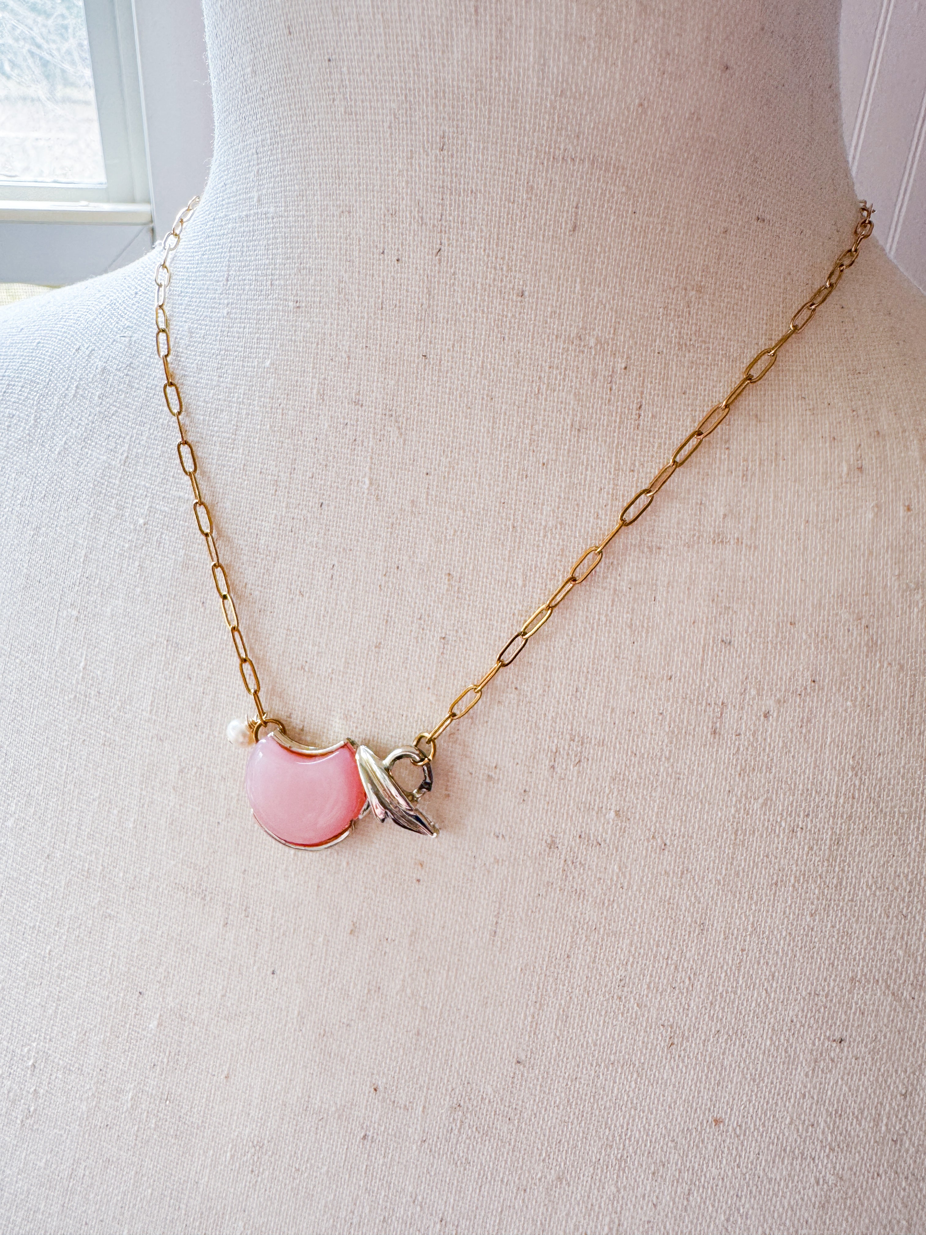 Wear a Piece of the Past, Reimagined for Today. Each necklace in this collection features authentic vintage jewelry links and charms, thoughtfully repurposed and paired with durable, waterproof gold-filled chains. Accented with dainty pearls and gemstones, these timeless designs blend history with modern elegance. Every piece is a limited edition, making it as unique as the story it carries.
