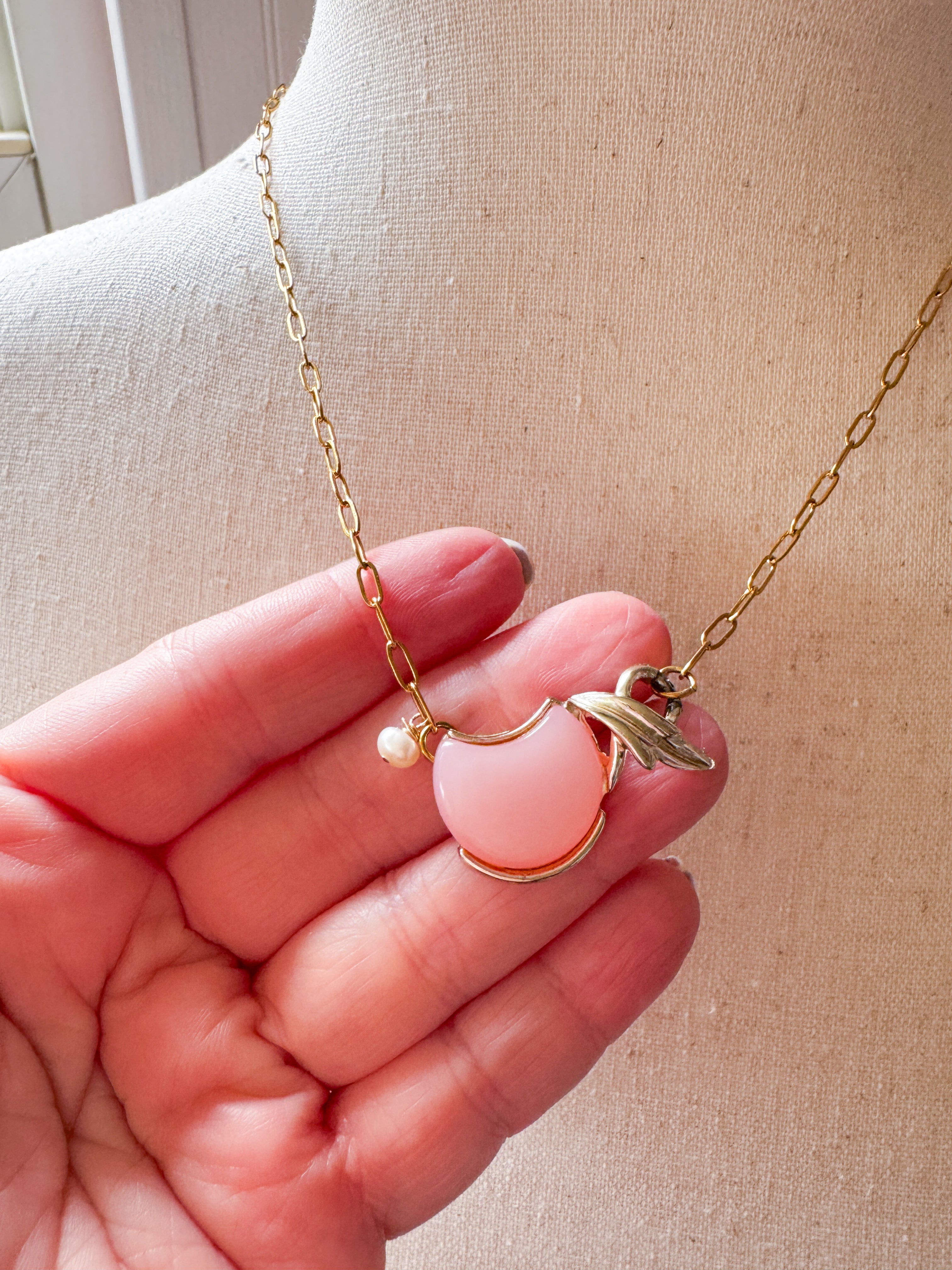 Repurposed vintage ingredients: 1950’s thermoset link paired with a fresh water pearl and 18kt gf pvd water resistant chain that is adjustable to 18”s. Carry a piece of history with you wherever you go✨ *last photo shows it layered with other pieces in the collection