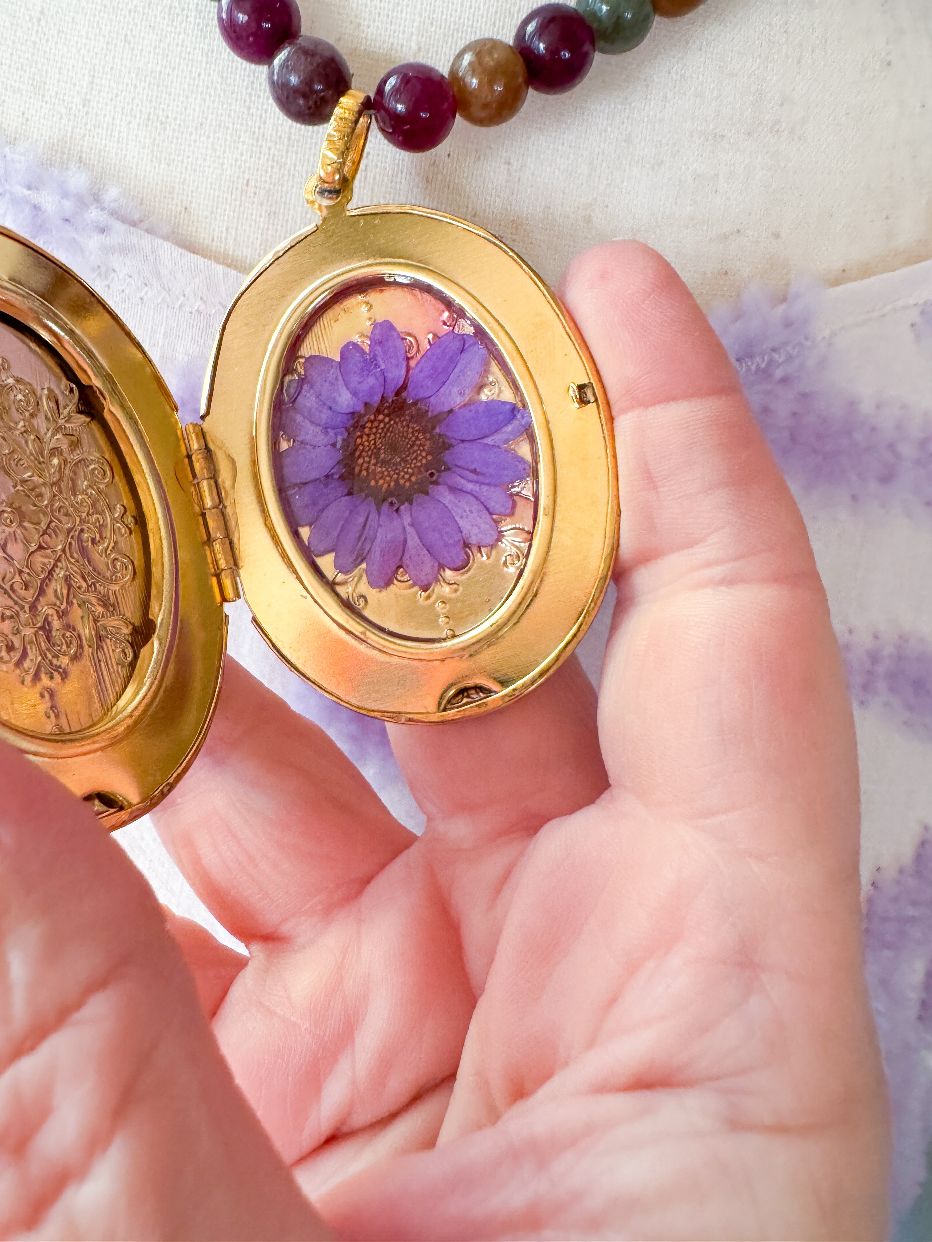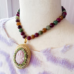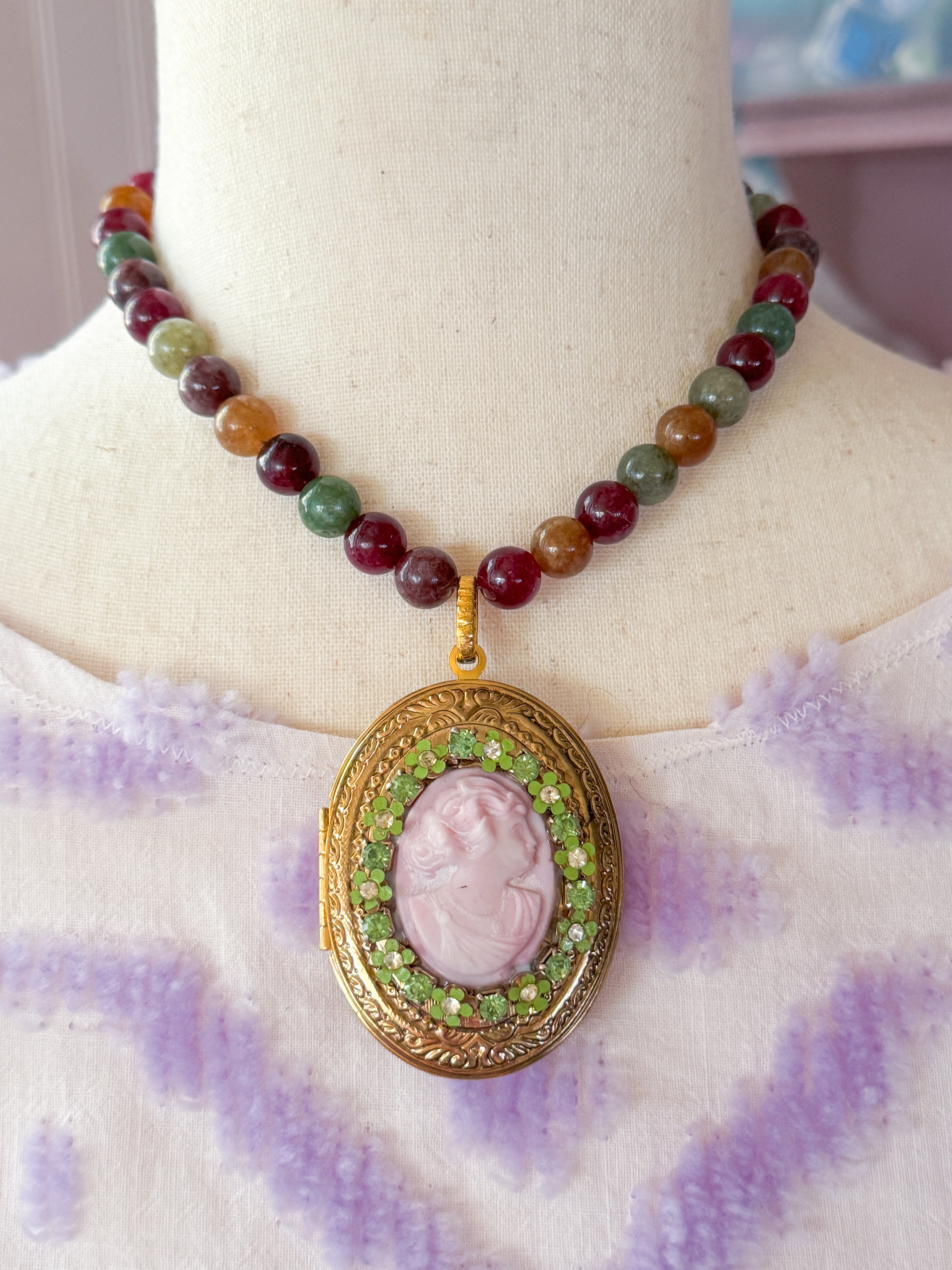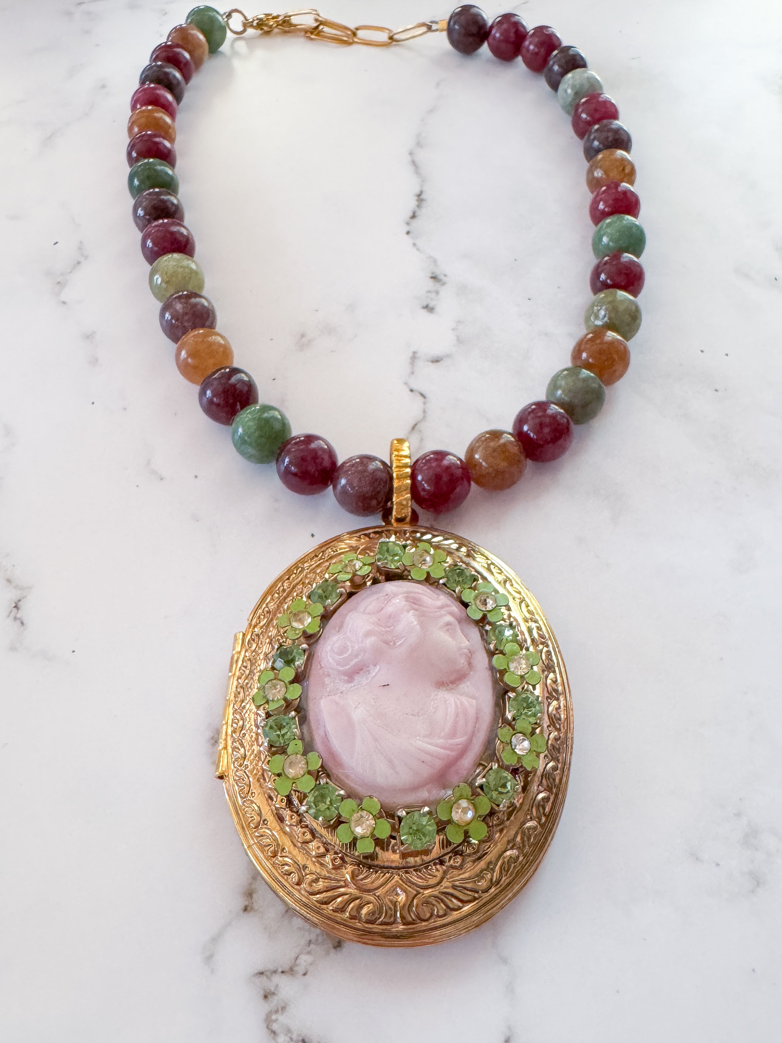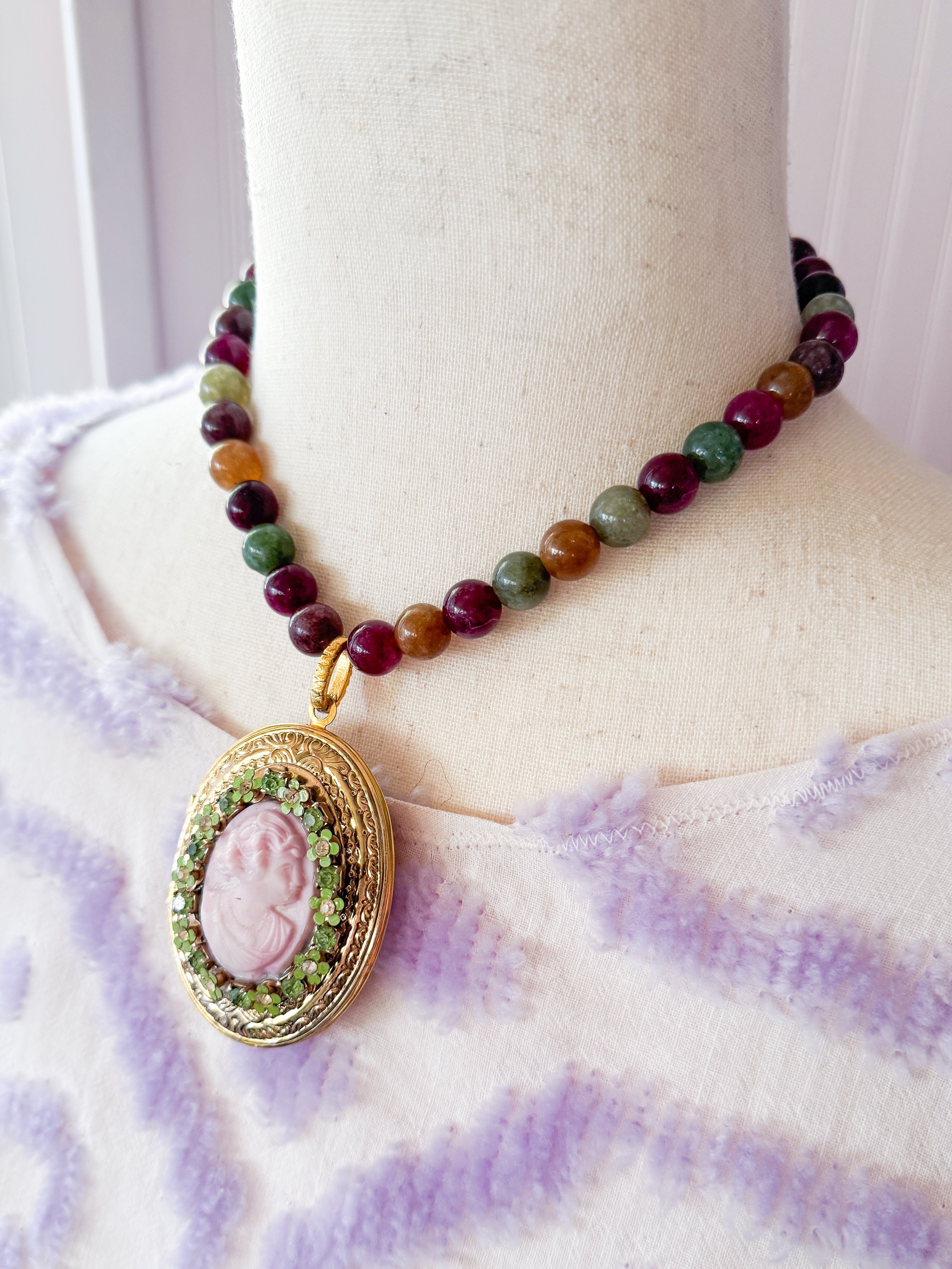 Colorful Eclectic Gemstone Cameo Locket Necklace