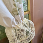 Please note that our clothing is created from well loved heirloom textiles & may show some of its history. We honor its history as bespoke charm. Sometimes we mend holes or add embroidery over a slight stain and other times we won’t. Our creations aim to spark joy, not perfection.  Perfectly imperfect… just like ourselves!
