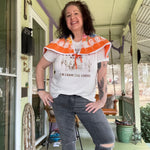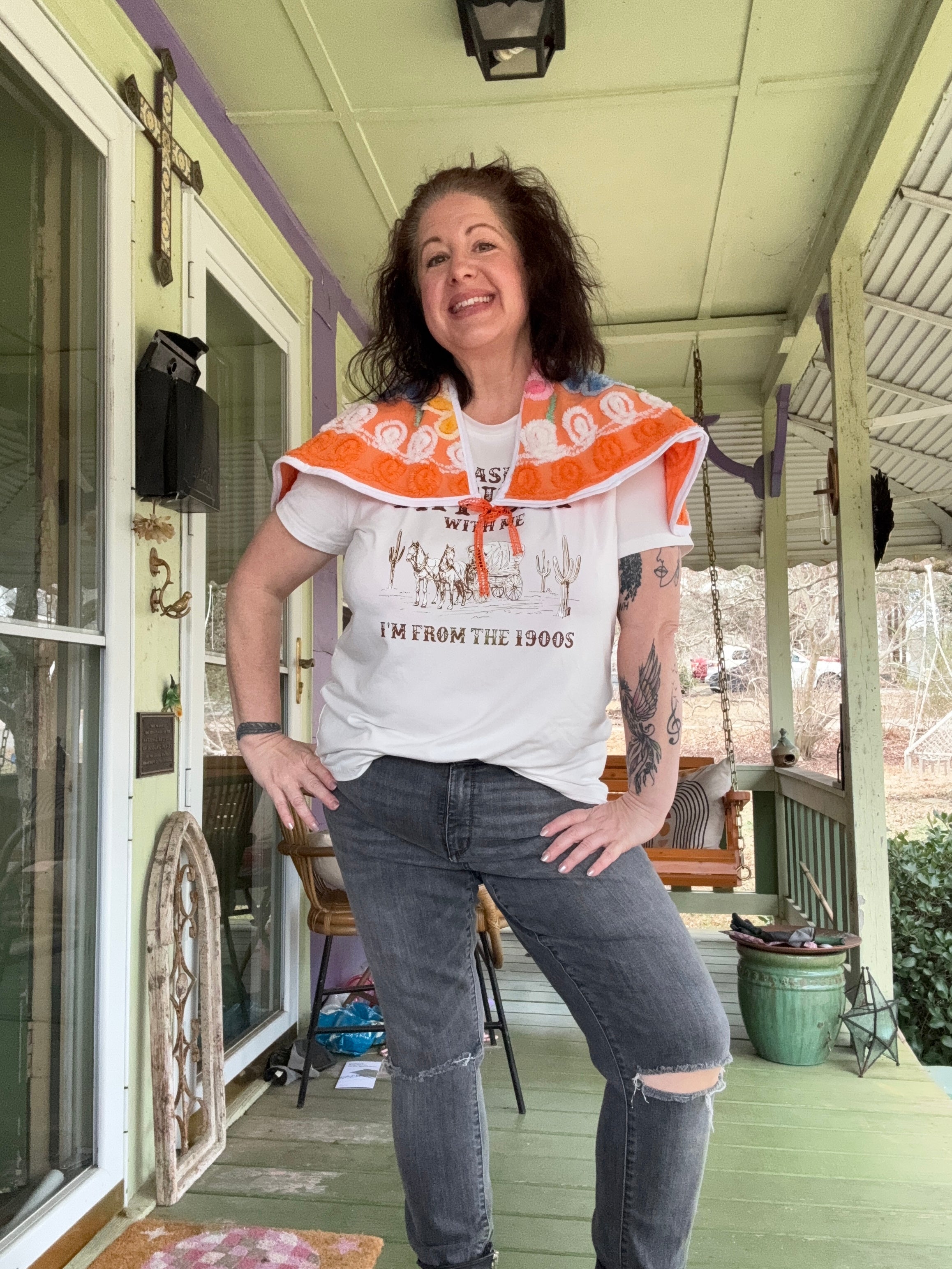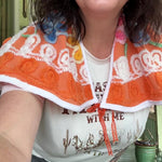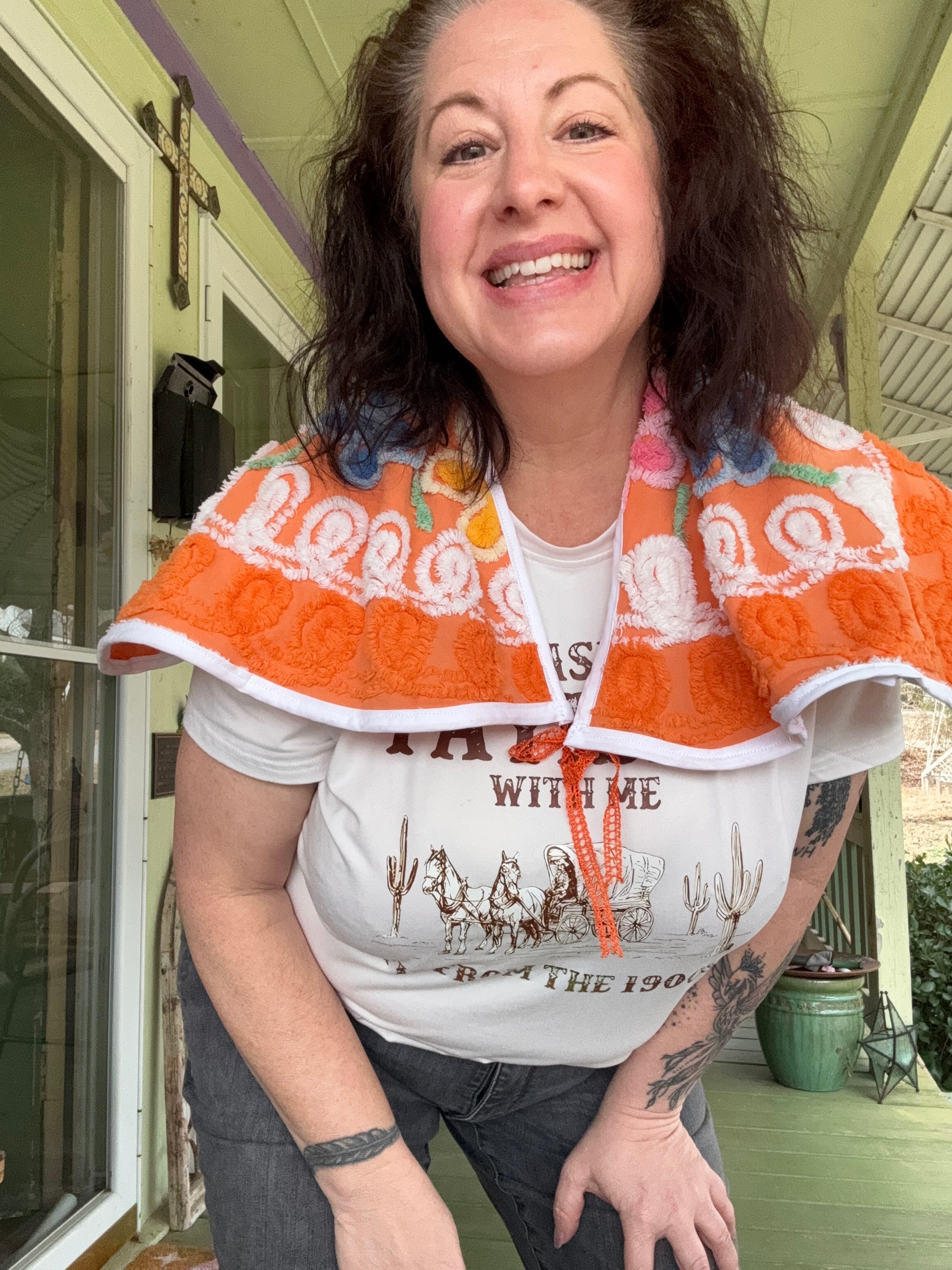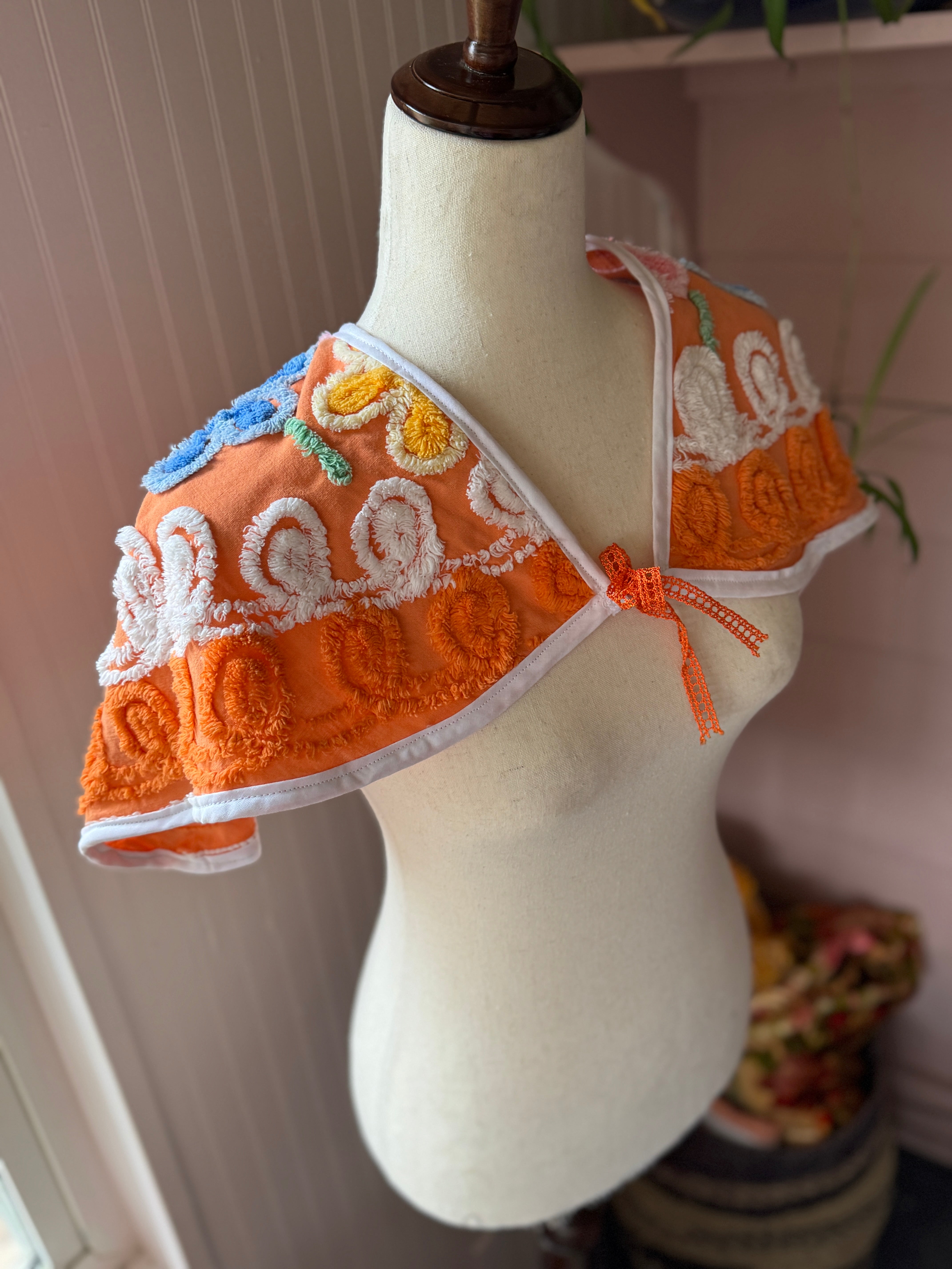Vintage rare orange chenille bedspread remnant repurposed into a colorful detachable collar. Carefully crafted to showcase the original floral tufted design. The perfect pop of color to transform a boring T-shirt or sweater!