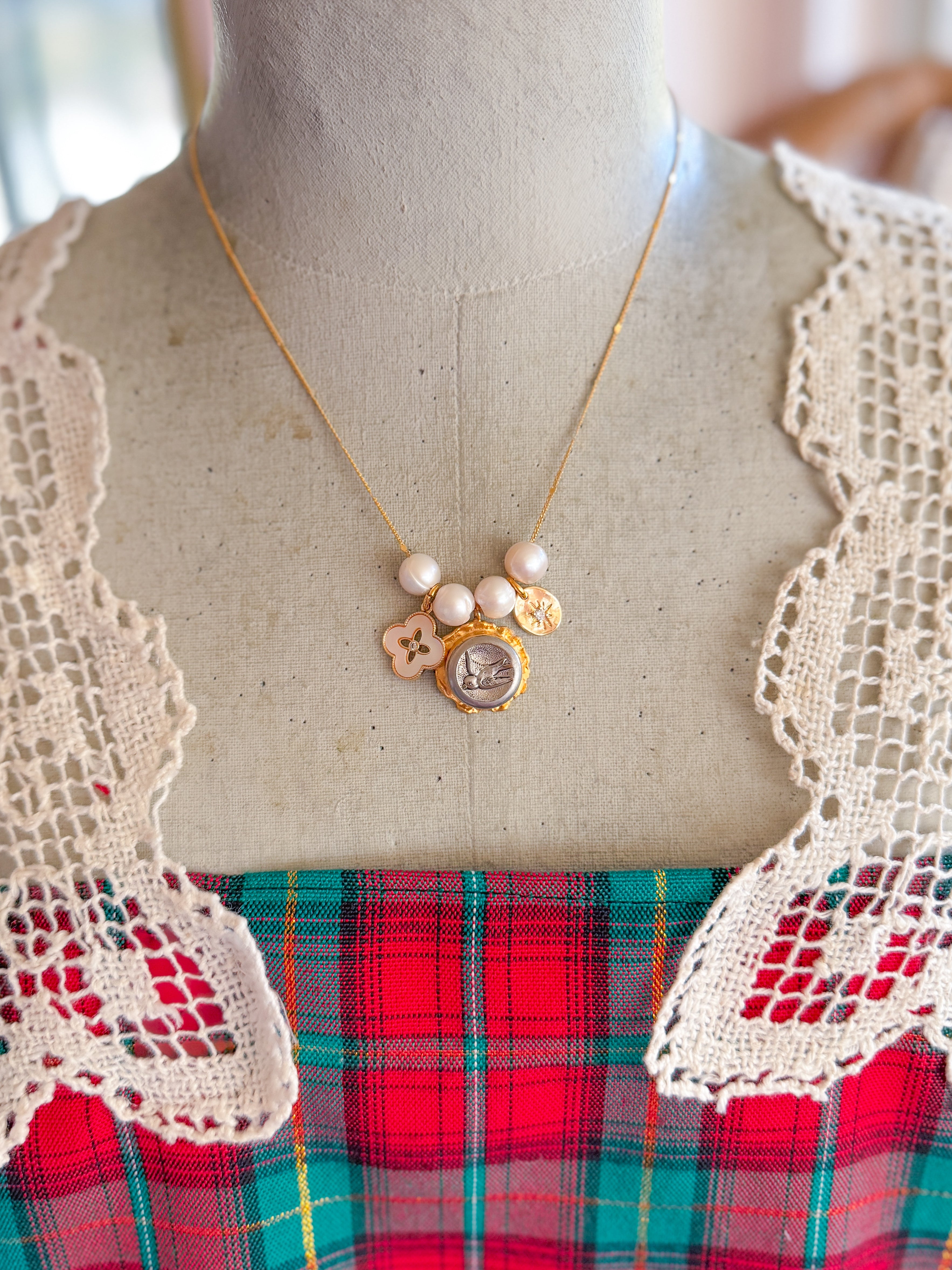 Please note that our clothing is created from well loved heirloom textiles & may show some of its history. We honor its history as bespoke charm. Sometimes we mend holes or add embroidery over a slight stain and other times we won’t. Our creations aim to spark joy, not perfection. Perfectly imperfect… just like ourselves!