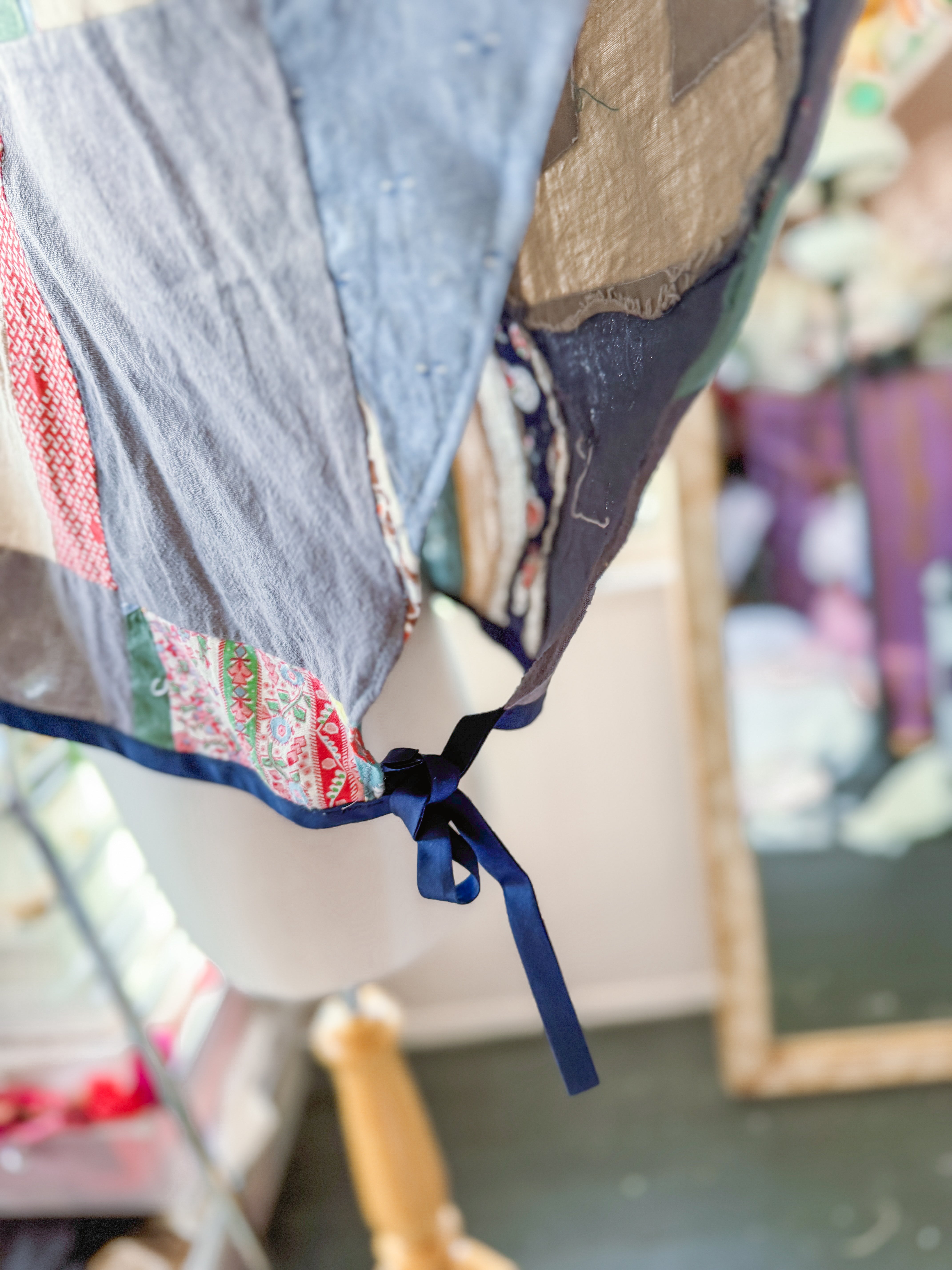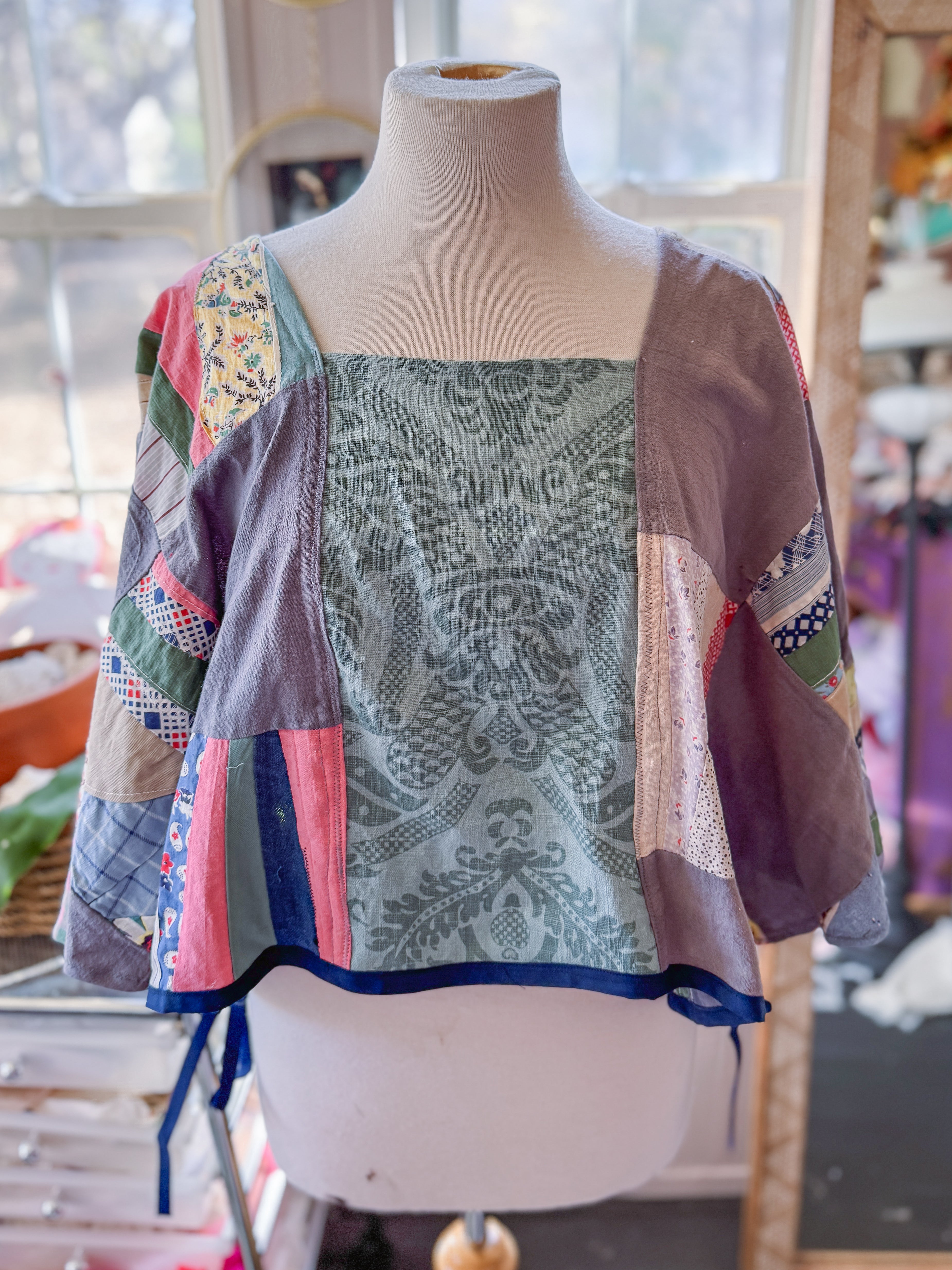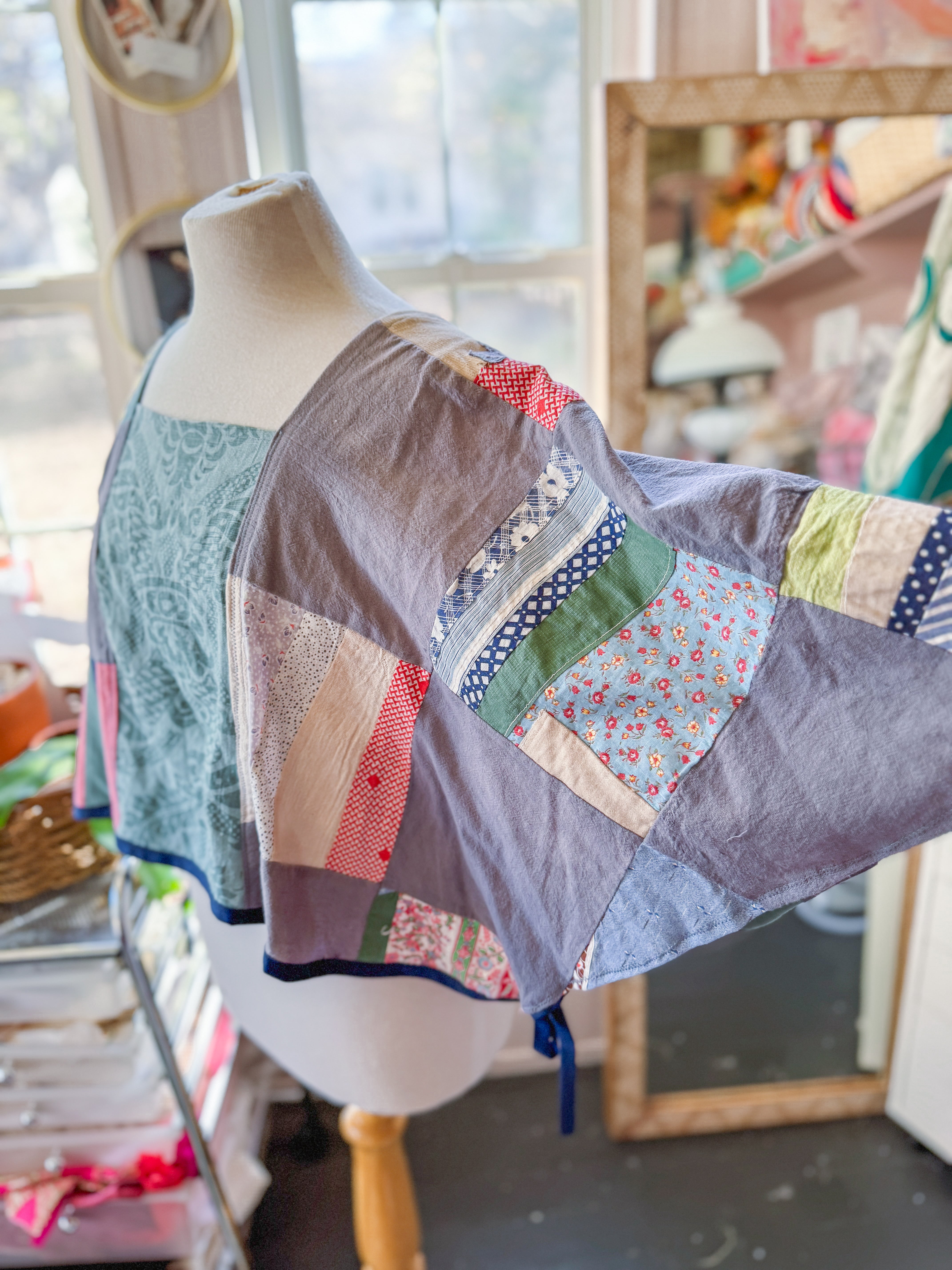 Please note that our clothing is created from well loved heirloom textiles & may show some of its history. We honor its history as bespoke charm. Sometimes we mend holes or add embroidery over a slight stain and other times we won’t. Our creations aim to spark joy, not perfection. Perfectly imperfect… just like ourselves!